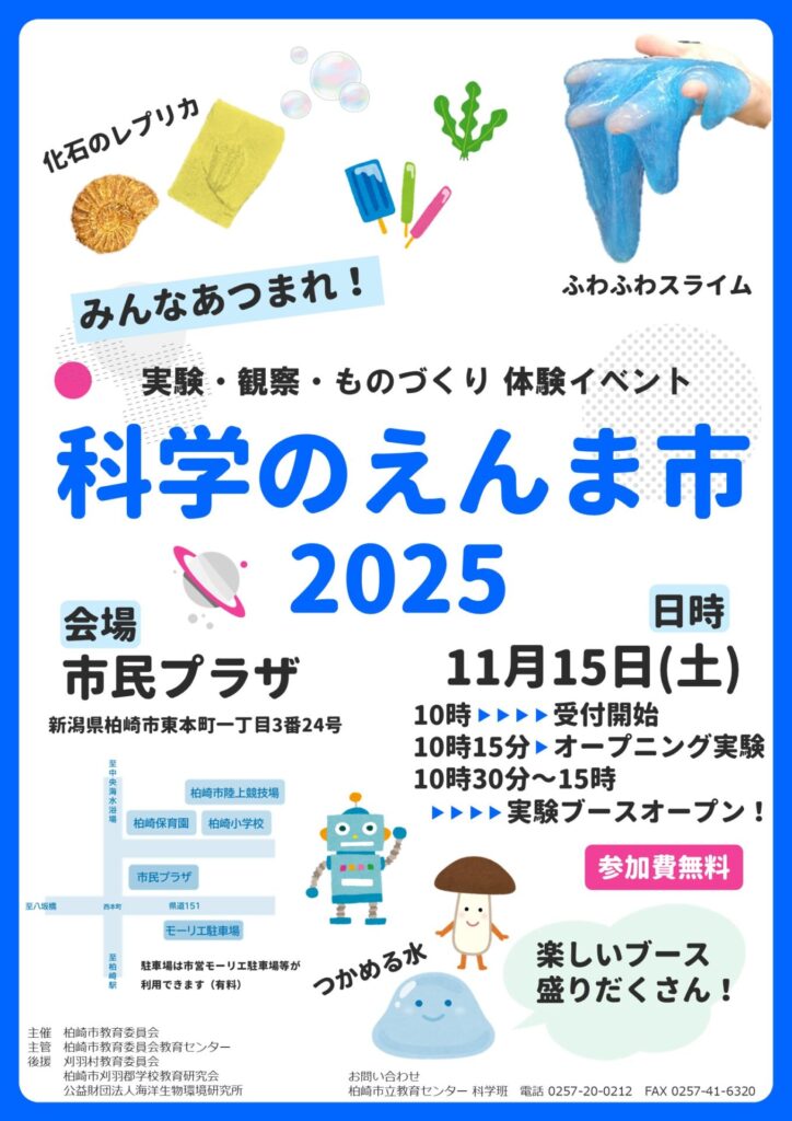 柏崎市教育委員会主催の『科学のえんま市2025』が今年も開催されます。